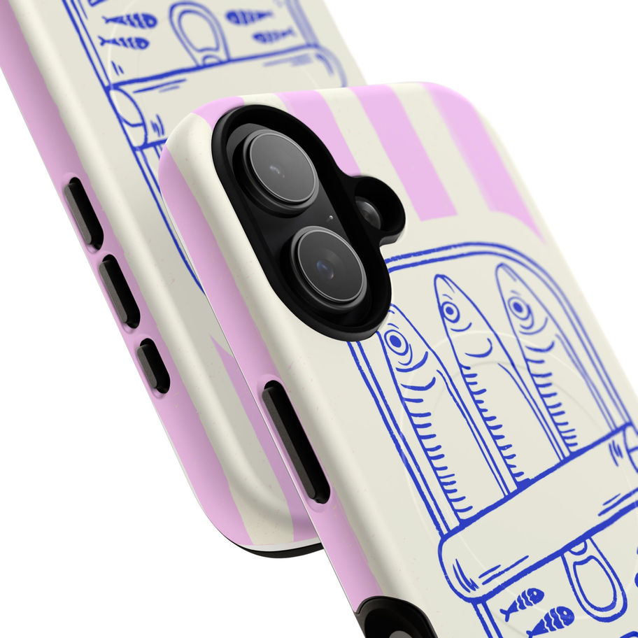 Protect your phone in style with this durable Tough Magnetic Case. Featuring a unique and whimsical design inspired by vintage sardine tins, this case offers not just protection but a touch of personality. The dual-layer construction combines an impact-resistant exterior with a soft TPU silicone liner, ensuring your device remains safe from drops and scratches. Perfect for those who want to express their individuality, this case is ideal for adults who enjoy quirky and artistic phone accessories. With compatibility for MagSafe® accessories and available in glossy or matte finishes, it is suitable for any occasionfrom birthdays to holidays like Christmas or Mother’s Day. Make a statement while keeping your phone secure!
